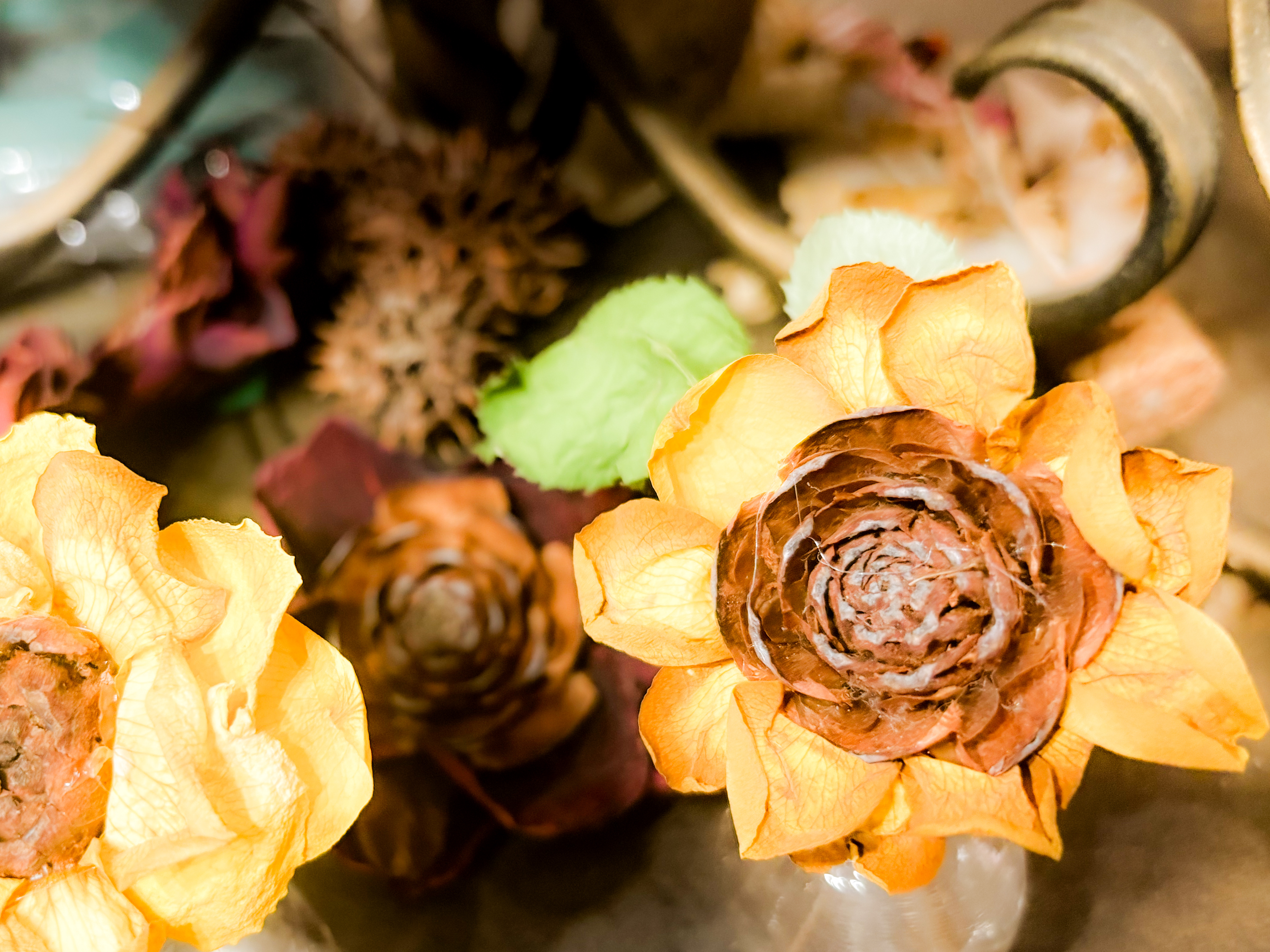 芸術の秋なので、木の実やドライフラワーを